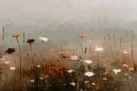 Bloemenveld in aardetinten. Een bijzondere blikvanger voor je interieur. Kies zelf het formaat en materiaal bij dit werk en maak het helemaal naar wens.