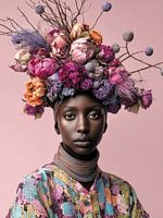 Bloemenvrouw is een digitale kunstcollectie waarin de vrouw verschijnt als een levende muze, gekroond met weelderige hoofddeksels van bloemen in een explosie van kleur en vorm.