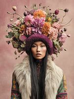 Bloemenvrouw is een digitale kunstcollectie waarin de vrouw verschijnt als een levende muze, gekroond met weelderige hoofddeksels van bloemen in een explosie van kleur en vorm.