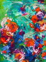 Wild en bruisend als een bloementuin in een zomerstorm. Zo sprankelt dit schilderij je ruimte binnen.