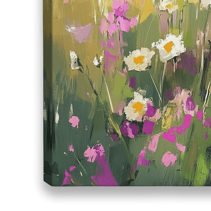 Details: bloemenweide schilderij, schilderij bloemenweide, bloemenveld, natuurkunst, impressionistisch landschap,…