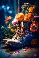 Laarzen omringd door bloemen uit de tuin. Een must voor elke schoenen- en tuinliefhebber en perfect voor in de hal.