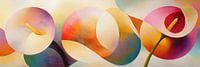 Details: abstract, bloemen, moderne kunst, vrolijk, kleurrijk, schilderij, decoratief, sfeervol, hedendaags, kunstliefhebbers