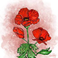 Deze dieprode en decoratieve klaprozen vallen op door hun onmiskenbare bloei als een vlekje rood. In mijn bloemencollectie vind je veel vergelijkbare bloemenfoto's in dezelfde stijl, die samen een mooie beeldcompositie vormen.