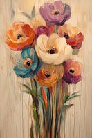 Details: bloemen schilderij, abstract schilderij, moderne kunst, kleurrijk, textuur, decoratief, fleurig, kunstcollectie, thuisdecoratie, organische vormen
