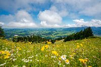 Koop de foto Bloemrijk uitzicht op de Oberallgäu en de laaghangende bewolking van Leo Schindzielorz op canvas, aluminium dibond, (ingelijste) fotoprint, behang en ArtFrame, op maat geprint in Fine-Art kwaliteit.
