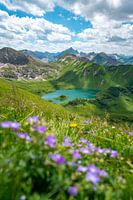 Bloemrijk uitzicht op de Schrecksee en de Hochvogel in de Allgäuer Alpen