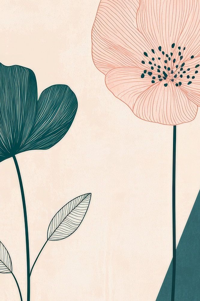 Delicate bloemen dansen harmonieus op een zachte achtergrond en harmoniëren met geometrische vormen. De levendige kleuren brengen een frisse lichtheid in de kamer en nodigen uit om te dromen. Perfect voor de slaapkamer, waar ze rust en natuurlijkheid uitstralen en een rustgevende sfeer creëren.