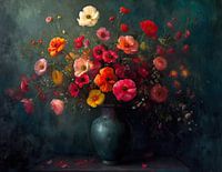 Bloemstilleven Schilderij | Blossom Enthral - kleurrijk bloemstilleven schilderij