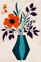 Levendige kleuren dansen in een harmonieuze eenheid: een feloranje bloem schittert te midden van delicate groene bladeren en filigraan takken. De veelzijdige vaas in diep turkoois voegt een modern accent toe. Deze artistieke compositie brengt frisheid en energie in de woonkamer en nodigt uit om te blijven hangen en te ontspannen. Perfect om creatieve gedachten te stimuleren.