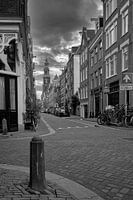 De beroemdste toren van Amsterdam is die van de Westerkerk. De karakteristieke kroon is vanuit bijna geheel Amsterdam te zien. De foto is gemaakt vanuit de Bloemstraat in het hartje van de Jordaan. De toren zelf staat aan de Prinsengracht, naast het Anne Frankhuis. De foto is zowel in kleur als zwart-wit te koop.