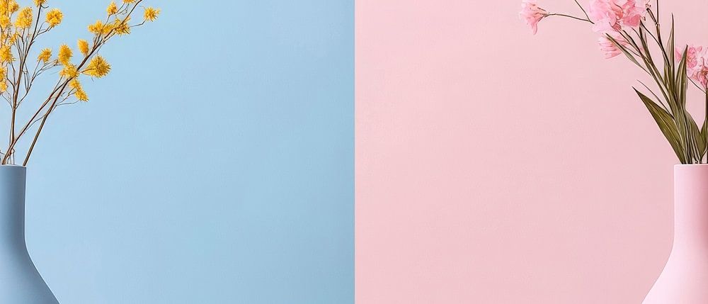 Frisse kleuren ontmoeten elkaar in een harmonieus duet: een zachtblauwe vaas met felgele takken contrasteert met een delicate roze vaas met elegante bloemen. Deze symmetrische compositie brengt leven en kleurrijke vreugde in elke woonkamer en creëert een ontspannen, uitnodigende sfeer. Perfect om accenten te zetten en de kamer op te fleuren!
