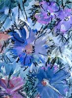 Bloemenschilderij in acrylverf en grafische elementen. Een kleurrijk en expressief bloemenschilderij voor in de woonkamer. Het straalt optimisme en vrolijkheid uit. De schoonheid van de natuur is altijd een onuitputtelijke bron van inspiratie. Bloemenfantasieën zijn kunstig geënsceneerd.