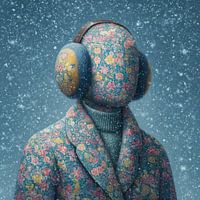 Bloesem Oorkap - Een surrealistisch wintertafereel waarin een mensachtige vorm volledig is omsloten door een tapijt van bloemen — als een levende jas die liever bloeit dan bloost. De meest opvallende elementen zijn meteen duidelijk: een volledig met bloemprint beklede figuur (hoofd én mantel één doorlopend patroon) en dikke, donzige…