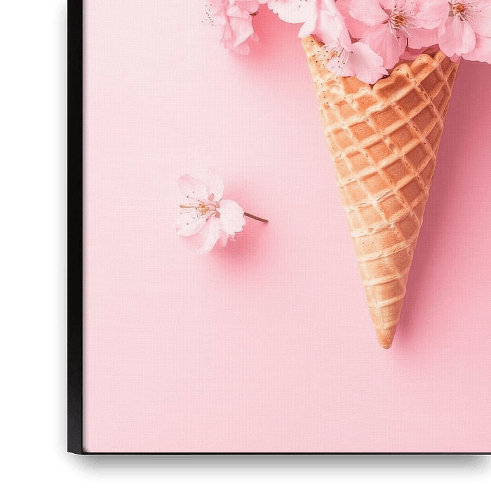 Een delicate bloemenpracht ontvouwt zich in een knapperig wafelbekertje, alsof de lente zelf is vastgelegd. De zachtroze tinten van de kersenbloesems dansen op een zachte pastelkleurige achtergrond, terwijl de tere bloemblaadjes kleine dromen lijken die zorgeloze vreugde uitstralen. Een hemels genot voor de zintuigen dat het hart…