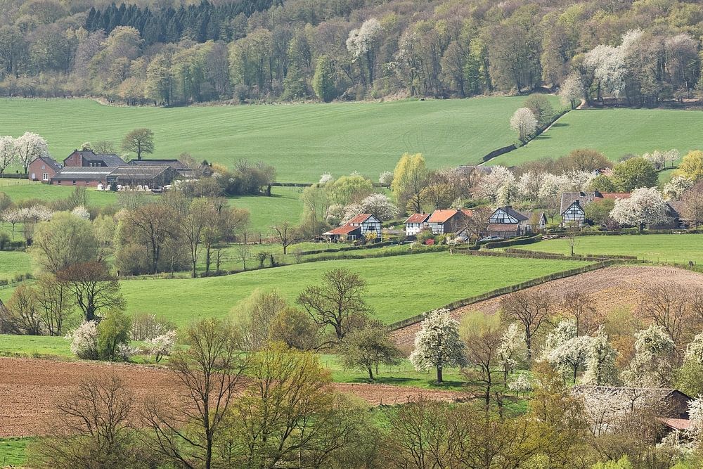 Uitzicht op de buurtschapen van Epen die in bloei staan in Zuid-Limburg