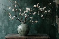 Een prachtig stilistisch kunstwerk met delicate bloesemtakken in een grote, rustieke keramische vaas. Dit ontwerp straalt een minimalistische en serene sfeer uit, perfect voor elke ruimte die behoefte heeft aan een vleugje rust en verfijning. De zachte kleuren en subtiele texturen passen goed in zowel moderne als klassieke interieurs. Ideaal voor liefhebbers van eenvoudige en tijdloze esthetiek.