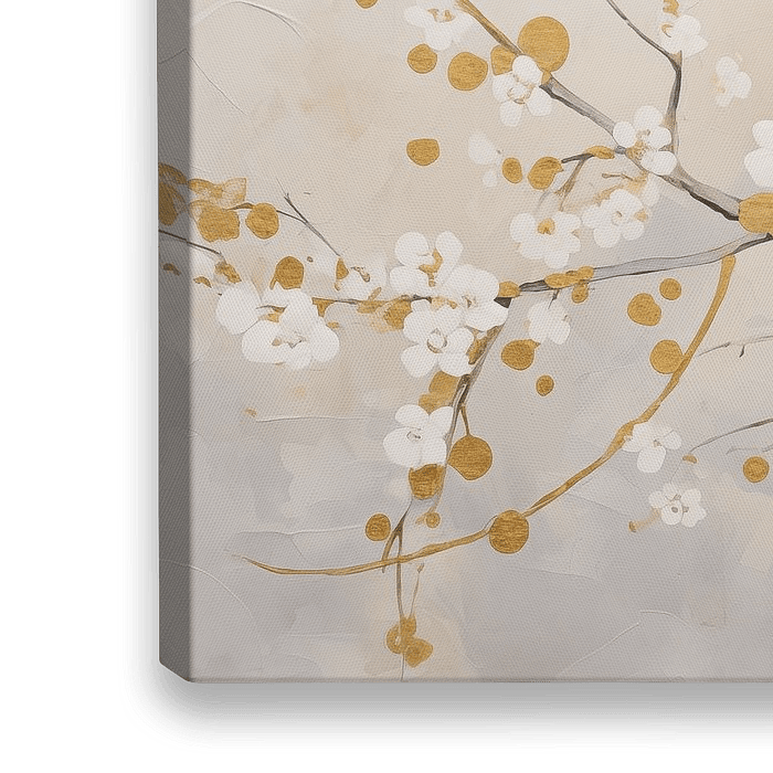 Koop dit landschapskunstwerk Bloesem met Blad Goud, Japandi van Caroline Guerain op canvas, aluminium dibond, (ingelijste) fotoprint, behang en ArtFrame, op maat geprint in Fine-Art kwaliteit.