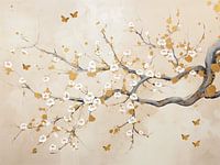 Witte Bloesem met goud accenten. Het voorjaar is weer in zicht, een nieuw begin, een nieuwe start, hoop.