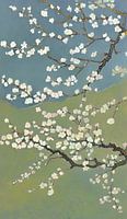 Takken met bloesem met verschillende achtergrond kleuren. Geïnspireerd op het werk van van gogh.