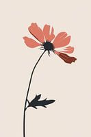 De afbeelding toont een gestileerde bloem met zachte, aardse kleuren. De delicate, open bloemblaadjes zijn warm rood-oranje en contrasteren harmonieus met de effen, lichtgekleurde achtergrond. De slanke, zwarte steel en groene bladeren geven het motief een elegante, minimalistische uitstraling die rust en gratie uitstraalt.