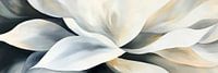 In zachte tinten wit en crème ontvouwt zich een bloemenpracht als een tedere omarming van de natuur. Elegante, gebogen bloemblaadjes lijken bijna te pulseren als ze glinsteren tussen lichte en donkere accenten. Een harmonieuze compositie die zowel rust uitstraalt als een subtiele dynamiek kan verlenen, waardoor de kijker zich kan…