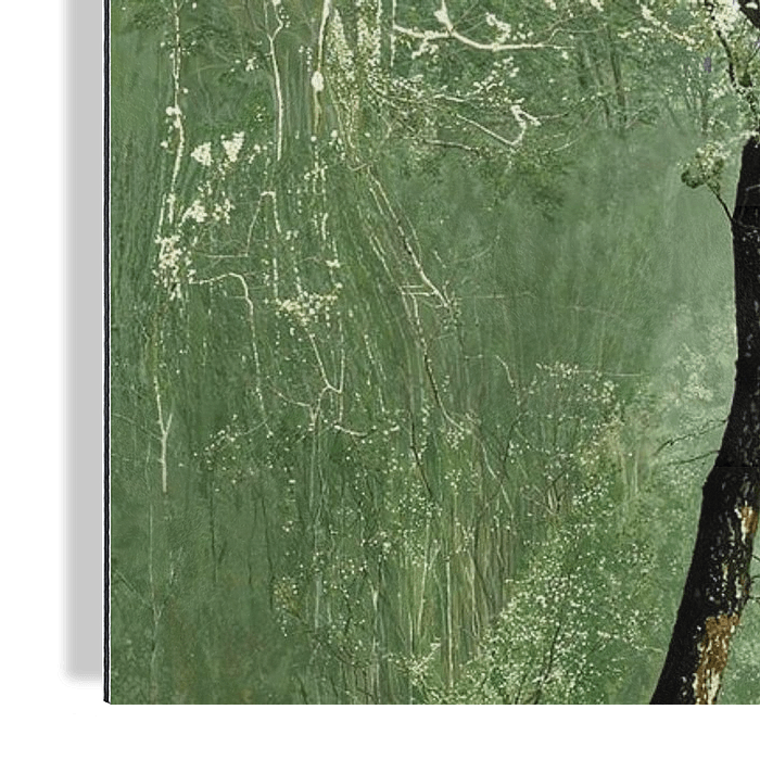 Bloesem - Dit schilderij heeft een dromerige uitstraling met een enkele boom die kleine, witte bloesems draagt, die elegant contrasteren tegen een abstracte achtergrond van verschillende groene tinten. De textuur is rijk en gelaagd, wat een organisch en rustgevend gevoel geeft, perfect voor een modern en natuurlijk…