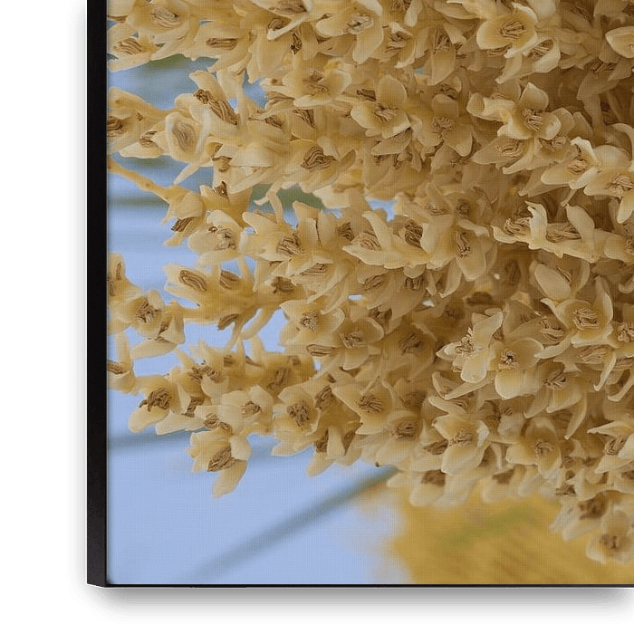 Koop dit bloemen kunstwerk Bloesems van een dadelpalm en zonlicht in de lente van Adriana Mueller op canvas, aluminium dibond, (ingelijste) fotoprint, behang en ArtFrame, op maat geprint in Fine-Art kwaliteit.