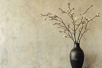 Een prachtig kunstwerk dat een minimalistische sfeer uitstraalt. Een hoge, donkere vaas met delicate bloesemtakken staat centraal tegen een rustige, neutrale achtergrond. De harmonie van natuurlijke tinten maakt dit ontwerp een ideale keuze voor moderne en serene interieurs. Perfect voor liefhebbers van eenvoud en schoonheid, dit kunstwerk brengt rust en stijl in elke ruimte.