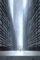 Detail van een huizenblok in een fictieve grote stad. Klassiek zwart-wit kunstwerk met majestueuze wolkenkrabbers. Een tijdloze poster die nooit uit de mode raakt. Zwart-wit werken zijn geweldig voor decoratie omdat deze kleuren bij alle interieurstijlen passen. Ontdek mijn andere posters en creëer een persoonlijke galerijmuur voor uw huis!