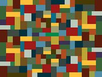 Een mozaïek van kleurrijke blokken, gemaakt met de behulp van een computer. Moderne kunst mooi om na te kijken. Combinatie van warme kleuren voor aan de muur en een doolhof voor de ogen.
