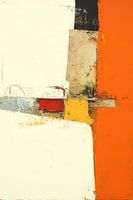 Details: abstract schilderij, modern kunst, witte kleur, oranje kleur, compositie, kunstwerk, dynamisch, kleurcontrast, hedendaagse kunst, geometrische…