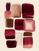 Een krachtige compositie van geschilderde vlakken in bordeaux, blush en aardetinten. De herhaling van vormen zorgt voor structuur en balans. Tijdloos, stijlvol en makkelijk te combineren.