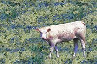 Digitaal schilderij van een blonde koe in de stijl van Vincent van Gogh