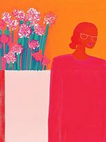 Een expressief en eigentijds kunstwerk met een krachtige vrouwelijke figuur in warme tinten roze en rood, naast een weelderige bloemencompositie. De felle oranje achtergrond versterkt de zomerse sfeer en maakt dit werk een echte statement piece. De vrouw met zonnebril straalt rust, stijl en zelfvertrouwen uit. Ideaal voor een modern…