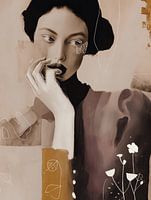 Modern en abstract portret in goud en aardetintenCarla Van Iersel Modern portret "Flower girl"Carla Van Iersel