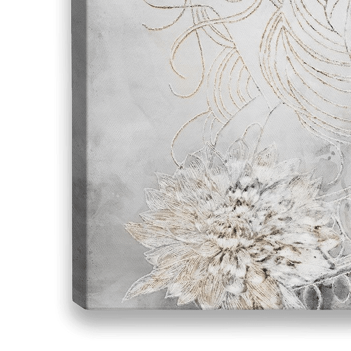 Aquarel schilderij in grijs,zilver en goud tinten, mixed media portret van een vrouw met bloemen