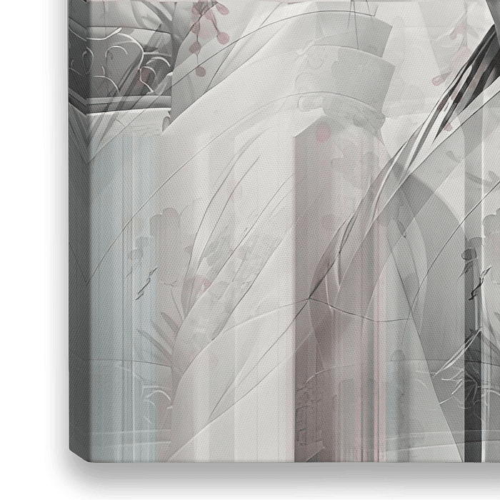 Stap binnen in een wereld waar realiteit vervloeit tot een betoverend schouwspel van kleur en vorm, waar een geisha zich bevindt te midden van roze kersenbloesems in een abstracte compositie.