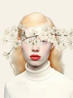 In zachte, lichte tinten en felrode lippen als een kunstzinnig statement.