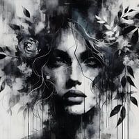 Dit intrigerende schilderij, gedrenkt in serene blauwtinten, onthult de gracieuze vorm van een vrouw met bloemen in haar haar. De levendige nuances symboliseren groei en vernieuwing, terwijl de organische verstrengeling harmonie tussen mens en natuur uitdrukt. Kracht en kwetsbaarheid stralen van de vrouwelijke figuur, en de subtiele details voegen een tastbare dimensie toe. Abstract en inspirerend, dit kunstwerk past moeiteloos in diverse interieurs als een tijdloze expressie waar blauw rust verbindt met natuurlijke schoonheid.