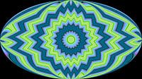 Een kleurrijk kunstwerk volgens een vastomlijnd patroon. Dit beeld zorg voor rust, focus en balans. De kleuren zijn blauw, petrol, lichtblauw en lichtgroen. De achtergrond is zwart. Een mooi patroon is dit!