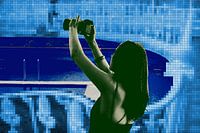 Fotografie, collage en grafische bewerking in groen en blauw.