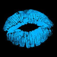 Pop art afdruk van een zoen met verschillende kleuren lippenstift.