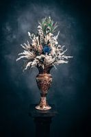 Boeket gedroogde bloemen als stilleven in een koperen vaas