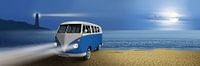Cult - Oldtimer Campingbus op het strand in het romantische licht van het maanlicht.