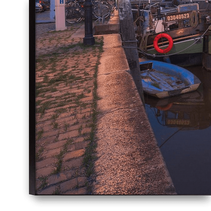 Jouw gekozen kunst als print op doek, gespannen in een aluminium frame. Snel en eenvoudig te verwisselen voor een frisse uitstraling, helemaal zoals jij het wilt.