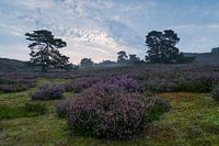 Het blauwe uurtje op de Limburgse Brunssummerheide met de prachtige bloeiende heide in de nazomer