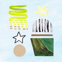 Een vrolijk en speels kunstwerk met Matisse-geïnspireerde vormen in pastel tinten. De figuren zorgen voor een dynamisch, minimalistisch geheel. Perfect als muurdecoratie voor de kinderkamer of een modern interieur met een speelse touch.