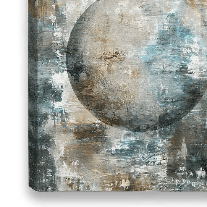 Abstracte kunst in voornamelijk grijs en blauw tinten, fantasie mixed media