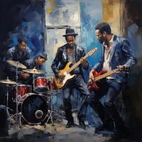 Prachtige Blues spelende muzikanten artistiek schilderij. Met prachtige kleurtinten en een uniek ontwerp maakt dit tot een stijlvolle fotoprint die prachtig staat in elke ruimte. 100% uniek en origineel!